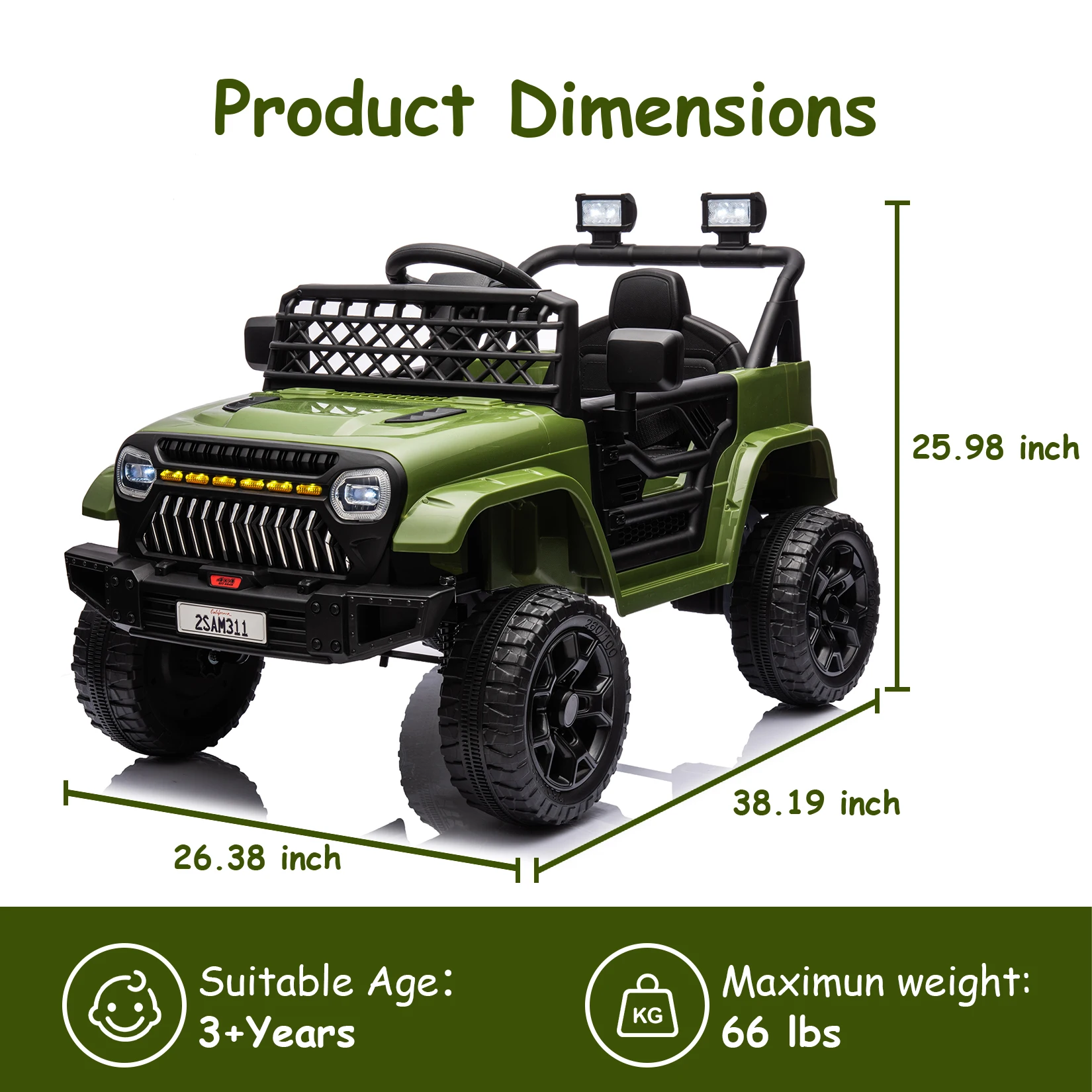 Perfect Gift for Kids: Made from safe materials, this kids' ride-on truck is suitable for children aged 3 and above with a maximum weight capacity of 66 LBS. This cool and stylish ride-on toy makes a perfect gift for kids and grandchildren on special occasions like birthdays, Christmas, New Year, Children's Day, and more