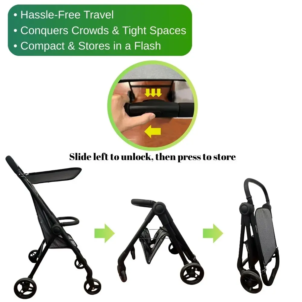 ✅ One-Second, One-Hand Fold: Effortlessly collapse the stroller with a single hand in seconds—perfect for travel, crowded spaces, or quick storage in car trunks.